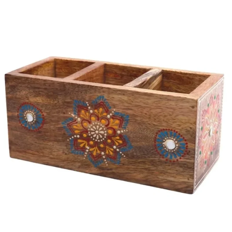 Mango Wood hand Painted Knifes/ Spoon Holder